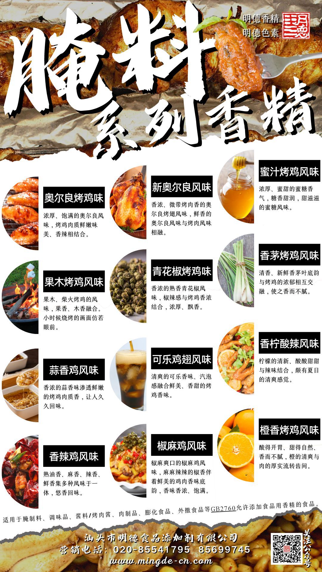 適用范圍:腌制料、肉制品、調(diào)味品、醬料、烤肉醬、膨化食品、復(fù)合調(diào)味料、麻辣食品、外撒料等GB2760允許添加食品用香精的食品。