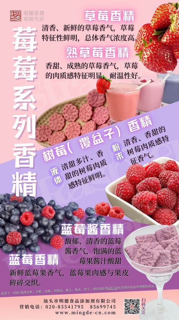 此外,汕頭市明德食品添加劑有限公司在數(shù)十年的研發(fā)中推出了眾多水果風(fēng)味香精,從草莓、芒果、橙子 到 沙棘、佛手果、獼猴桃,應(yīng)有盡有。歡迎廠家們了解嘗試~